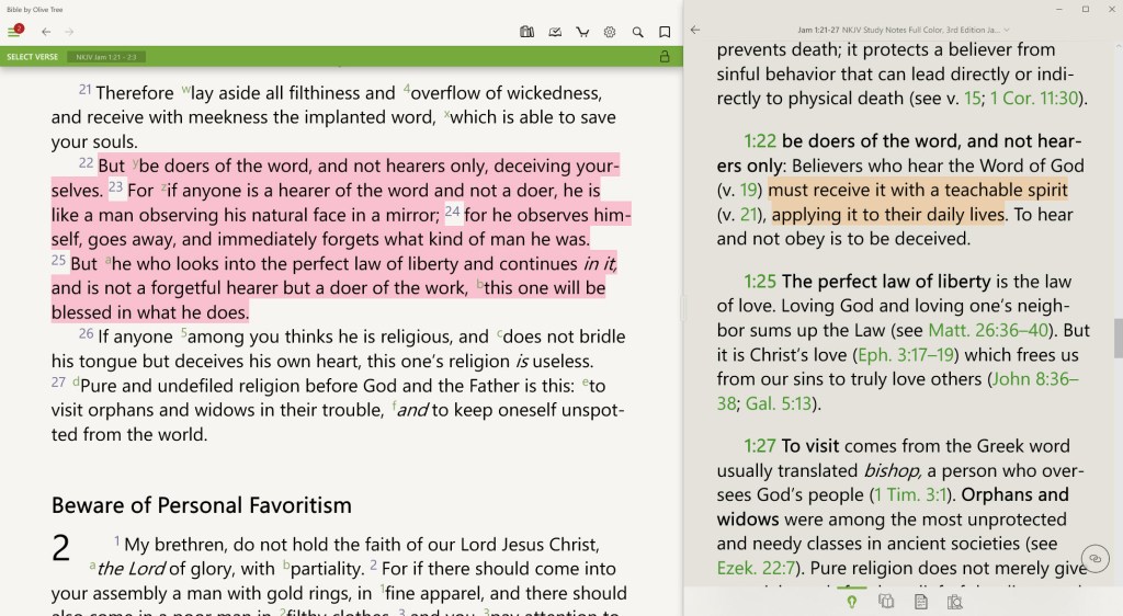James 1:22-25 is a really great passage to help remind us of what it means to not just listen and know the Word of God, but also to act upon it within our daily lives. Until we act upon the knowledge and wisdom that has been given to us, it will forever remain just that, knowledge and wisdom. But once we’ve put it into action, it becomes real life experiences.