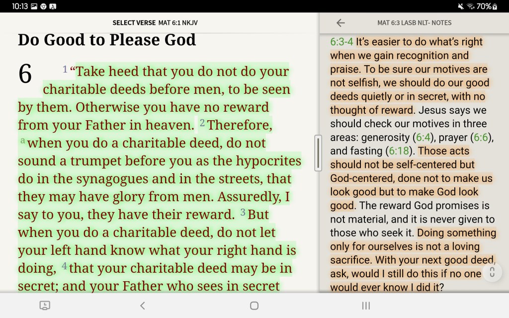 1 “Take heed that you do not do your charitable deeds before men, to be seen by them. Otherwise you have no reward from your Father in heaven. 2 Therefore, when you do a charitable deed, do not sound a trumpet before you as the hypocrites do in the synagogues and in the streets, that they may have glory from men. Assuredly, I say to you, they have their reward. 3 But when you do a charitable deed, do not let your left hand know what your right hand is doing, 4 that your charitable deed may be in secret; and your Father who sees in secret will Himself reward you openly.